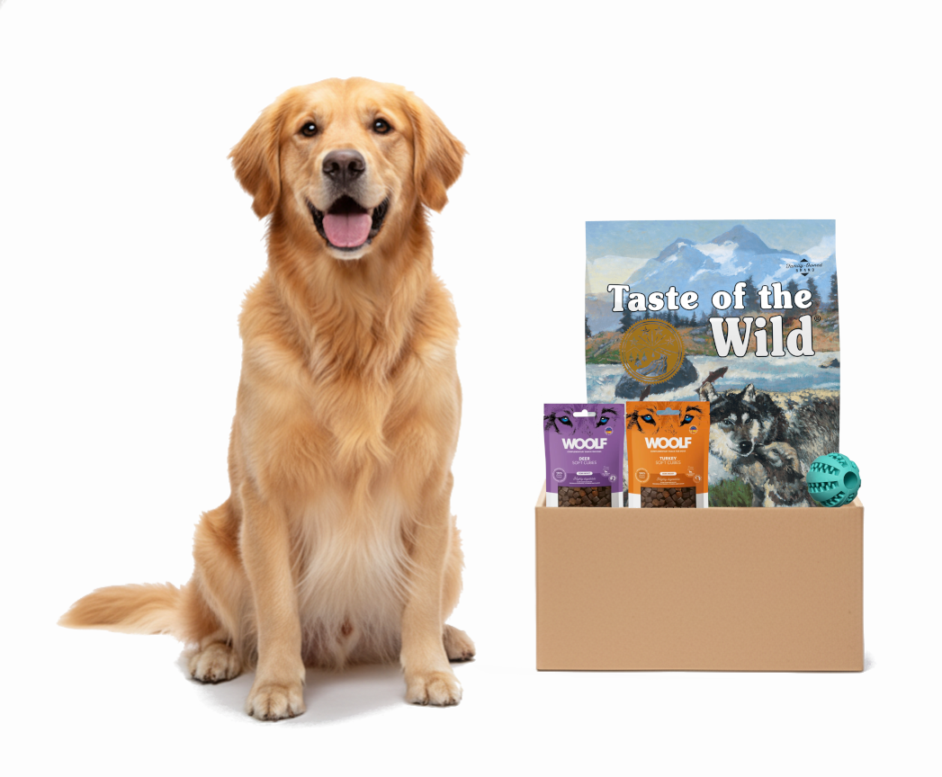 Wypełnione zdrową karmą, zabawkami i smakołykami, które Twój pies pokocha - starannie dobrane przez ekspertów PetGlow.